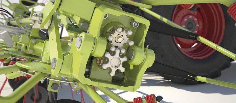 Ramiona rozrzutu zakrzywione o 29,3° zapewniają wysoką wydajność zgrabiania, delikatne przenoszenie paszy pomiędzy wirnikami oraz optymalny obraz rozrzutu. Efekt: większa wydajność i wyższa jakość pracy.