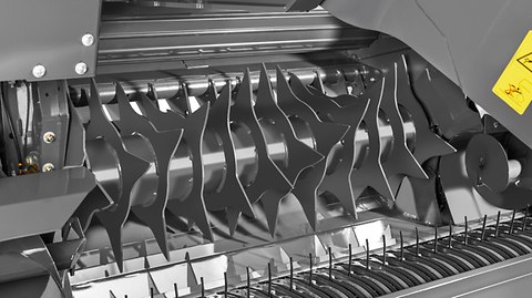 Krótka pasza i wysokie ciśnienie prasowania to podstawowy warunek dla bogatej w energię i smakowitej kiszonki. Dzięki 14 zabezpieczonym pojedynczo nożom rotor tnący ROTO CUT umożliwia doskonałą jakość cięcia o długości 70 mm. Noże można wygodnie montować i demontować od góry przy otwartej komorze prasującej.